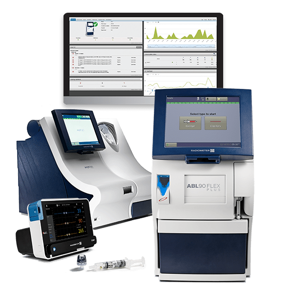 En plus des 19 paramètres critiques des gaz du sang et des 9 biomarqueurs, Radiometer offre des analyseurs des gaz du sang aisément connectables, des moniteurs transcutanés, et une solution informatique délocalisée qui automatisent et simplifient les prélèvements de sang et l'enregistrement des données avec: